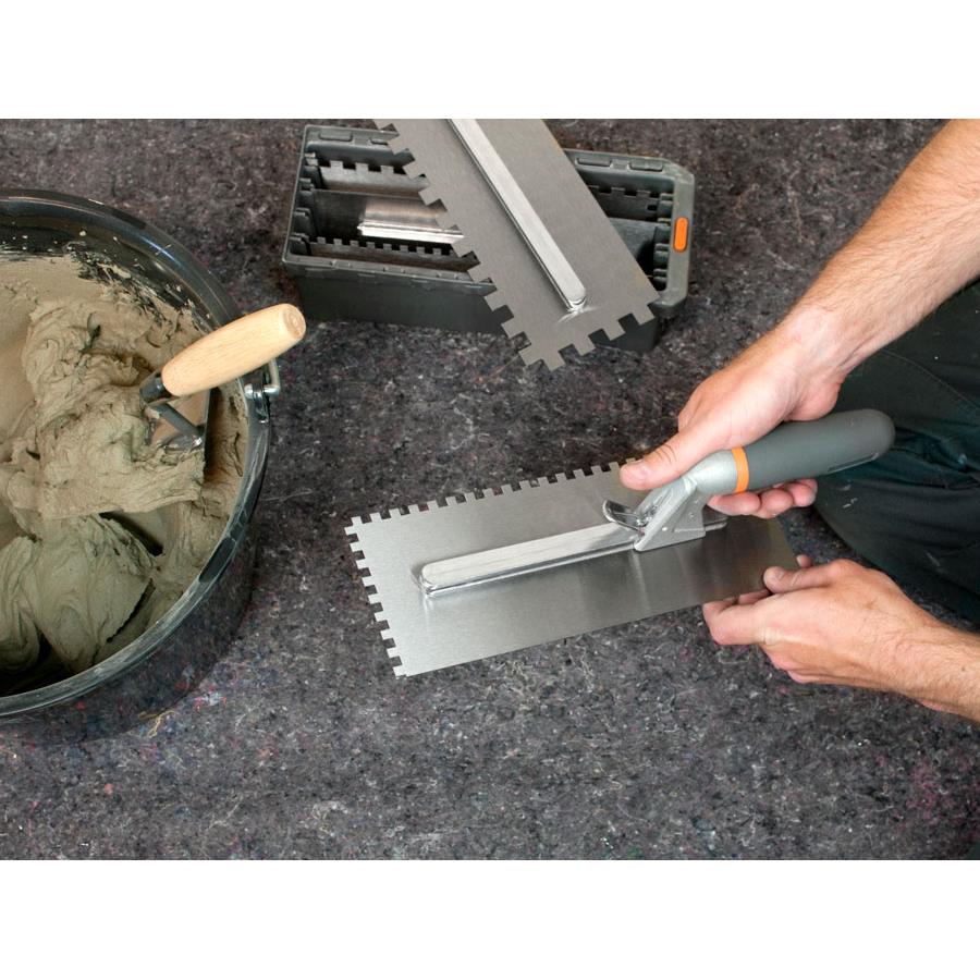 Bladen är tillverkade av rostfritt stål med en skena av aluminium. Bladstorlek: 280 x 115 resp 480 x 130 mm mm. Handtaget fästes på skenan och bladen byts enkelt ut, förvaras i medföljande låda och tar därför mycket liten plats.